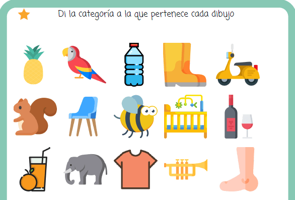 2️⃣ La segunda tarea consiste en decir la categoría a la que pertenece el dibujo (frutas, partes del cuerpo…etc)